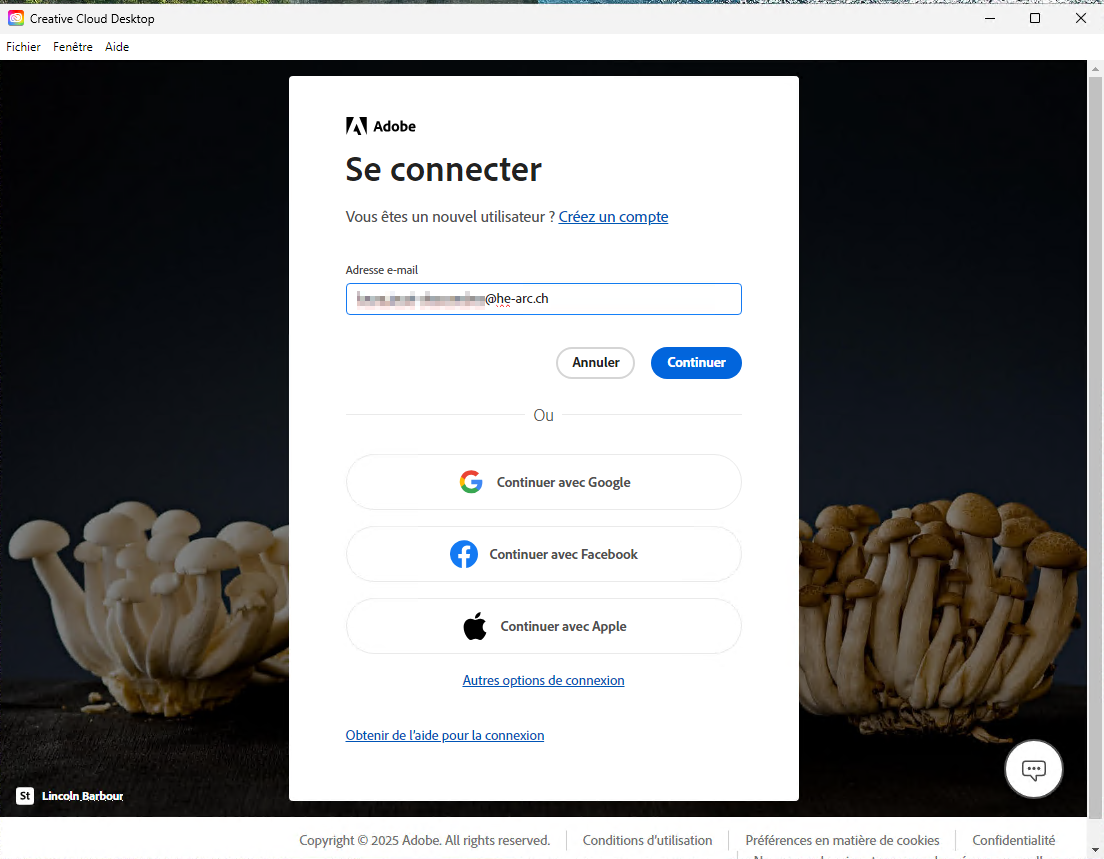 La connexion est ainsi établie pour tous les produits Adobe installés sur le même poste.