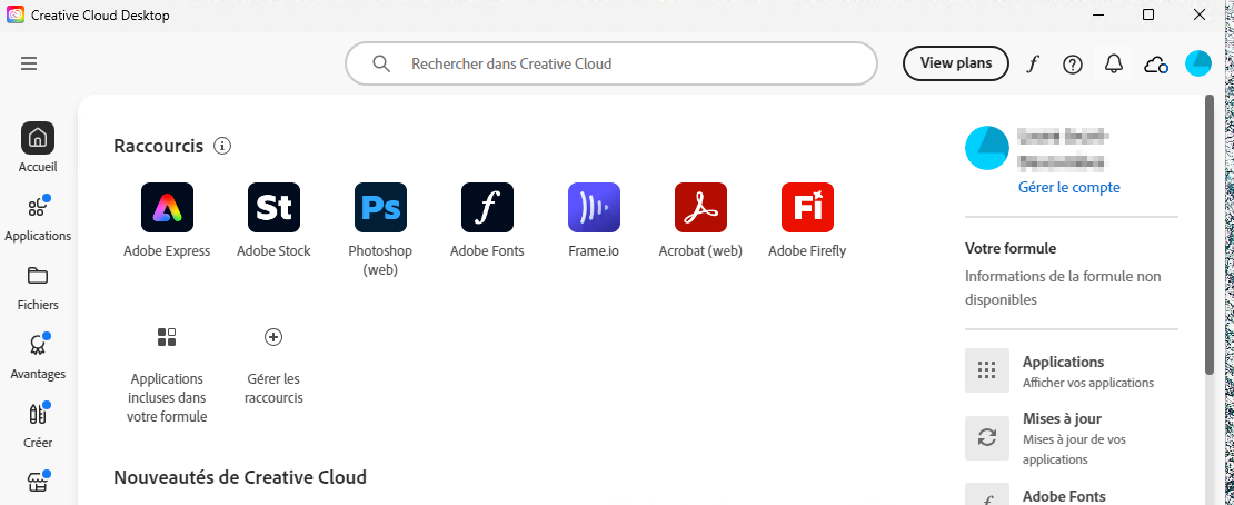- L’application Creative Cloud Desktop charge et affiche son écran d’accueil