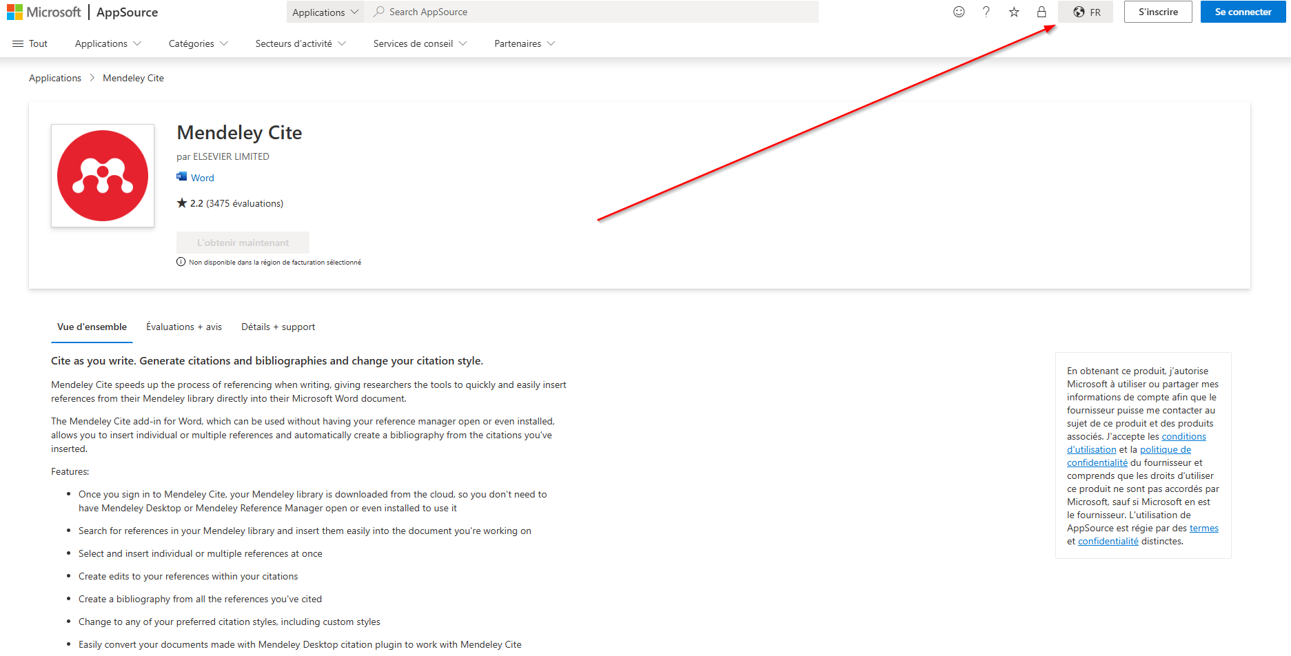- Télécharger Mendely Cite : https://appsource.microsoft.com/fr-ch/product/office/wa104382081