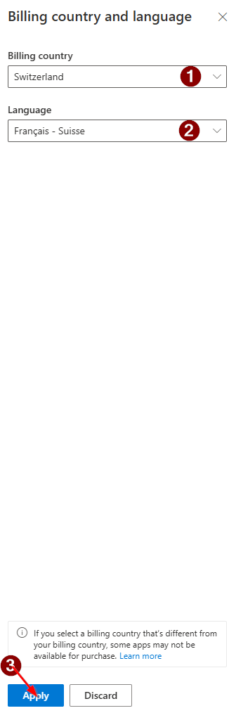 - Sélectionner les paramètres "Switzerland" et "Français - Suisse":