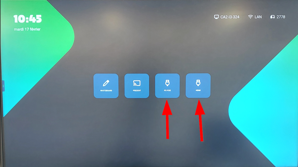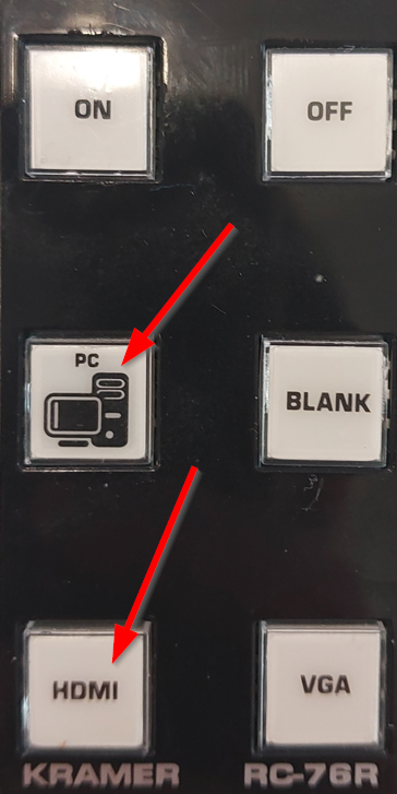 (PC-FIXE si projection depuis le pc de la salle | HDMI si projection depuis un laptop.)