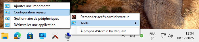 - Clique droit sur l’icone Admin By Request dans la barre des tâches :